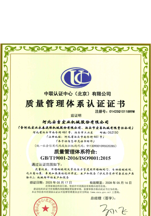 河北宏業(yè)永泰流體機(jī)械股份有限公司(原泊頭儀表總廠),生產(chǎn)流量?jī)x表產(chǎn)品有三十多年的歷史。參加了節(jié)流裝置國(guó)家標(biāo)準(zhǔn)GB/T2624-1981的起草工作。公司占地12萬(wàn)平方米,注冊(cè)資金3500萬(wàn)元。主要產(chǎn)品有節(jié)流裝置、儀器儀表、各類不銹鋼閥門、各種化工離心泵。公司取得了ISO9001:2015質(zhì)量體系認(rèn)證、挪威船級(jí)社CE認(rèn)證、出口產(chǎn)品Emark認(rèn)證、特種設(shè)備制造許可證等。同時(shí)河北宏業(yè)永泰還是中石化物資供應(yīng)商網(wǎng)絡(luò)成員,取得了中石油、中海油物資供應(yīng)商準(zhǔn)入證,是中國(guó)神華集團(tuán)、華電集團(tuán)、大唐集團(tuán)、中廣核等公司合格供應(yīng)商。產(chǎn)品出口日本、阿爾及利亞等國(guó)家。